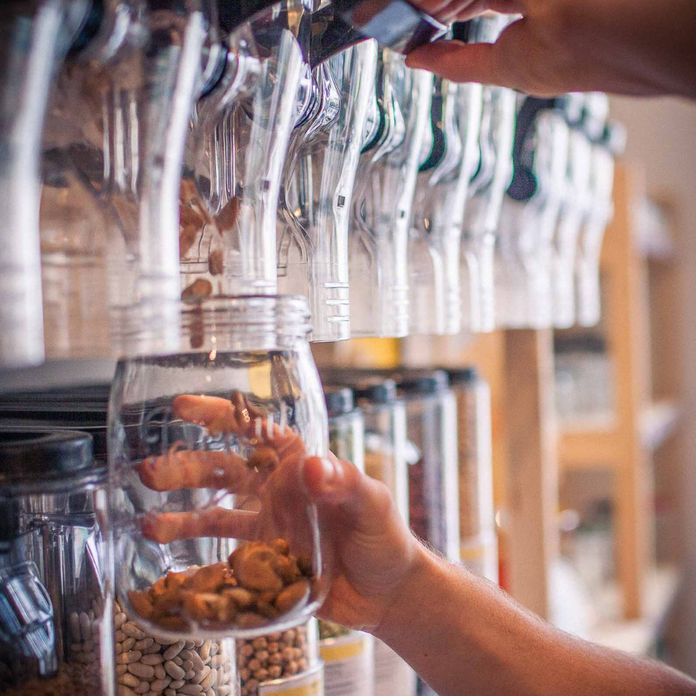 distribution de Vrac dans des contenants réutilisables et d’accessoires zéro